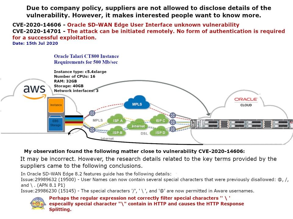 In short, I had did research and analytic on SD WAN topic. As mentioned, the data provided by vendor not clear and therefore I did the analytic and summarize my findings based on below circumstances. My observation found the following matter close to vulnerability (CVE-2020-14606).