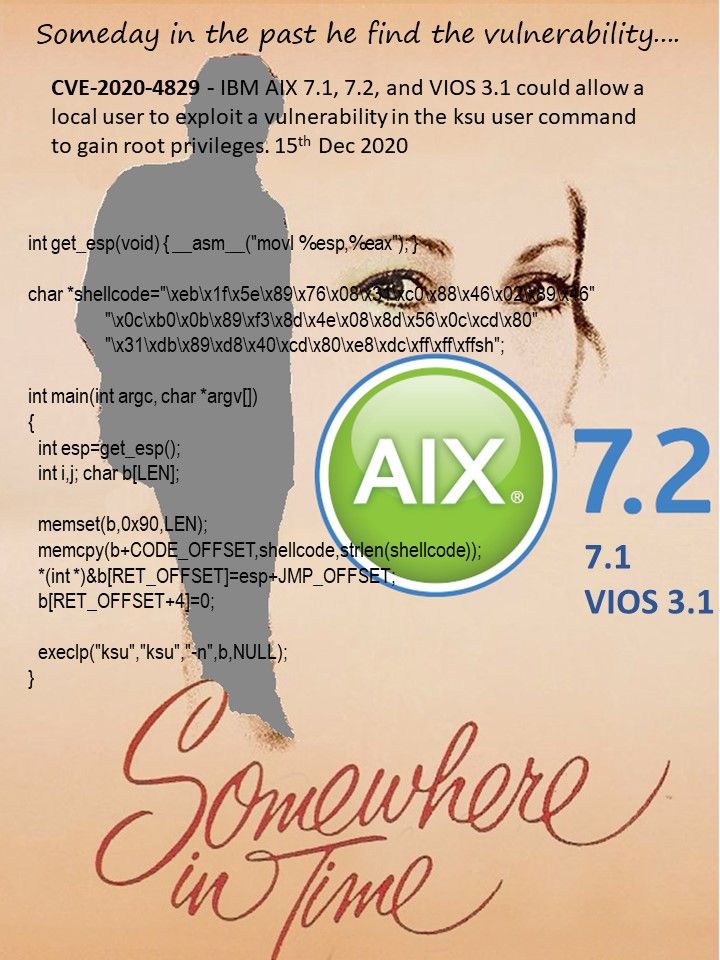 According to IBM AIX 7.2 security guidebook. It described that when Kerberos authentication is successful. The secldapclntd daemon saves the bind credentials to the [/]etc[/]security[/]ldap[/]krb5cc_secldapclntd directory. Whereby, it shown that AIX 7.2 is using Kerberos 5. Since CVE-2020-4829 not explicitly describe the vulnerability details. Perhaps it let me speculated that the vulnerability announced this month has relationship between flaw found 20 years ago.