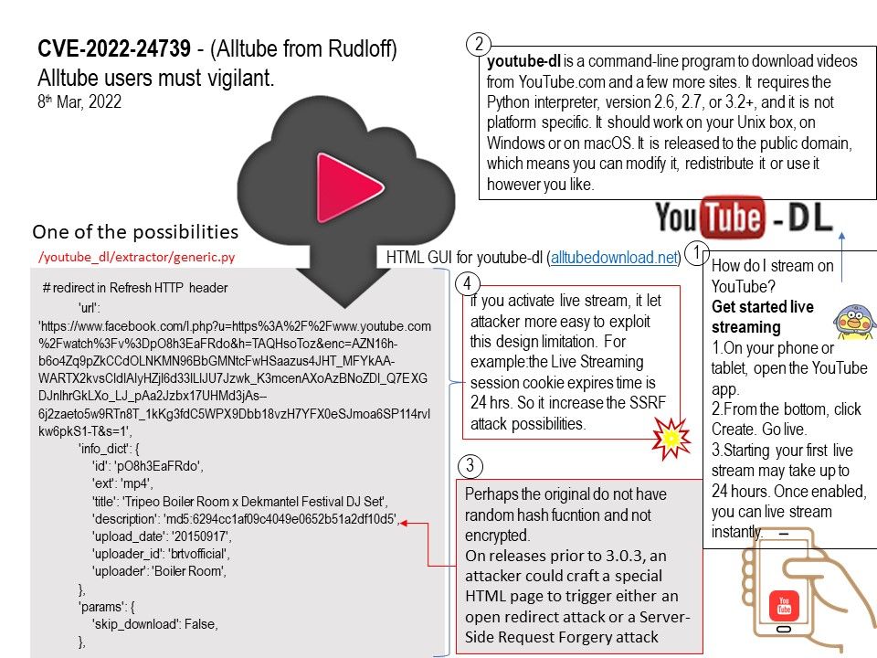 Vulnerability details: Certain versions of Alltube from Rudloff contain the following vulnerability: