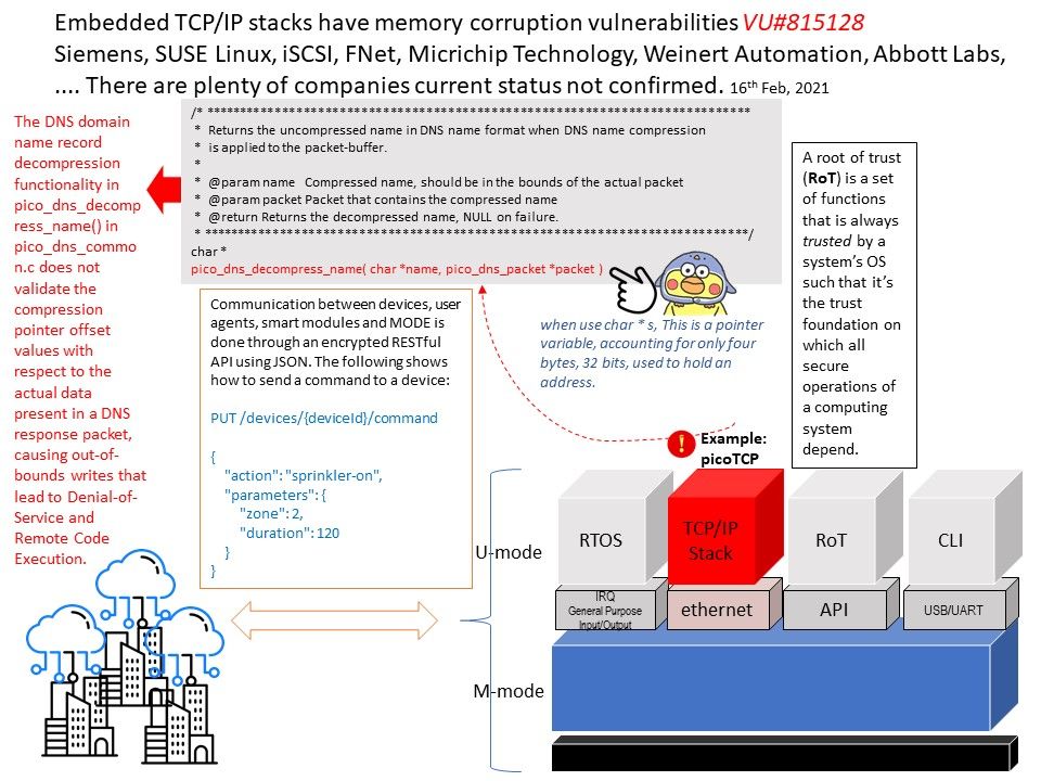 Preface: Embedded TCP/IP stacks have memory corruption vulnerabilities (Vulnerability Note VU#815128) – Siemens, SUSE Linux, iSCSI, FNet, Micrichip Technology, Weinert Automation, Abbott Labs, ….