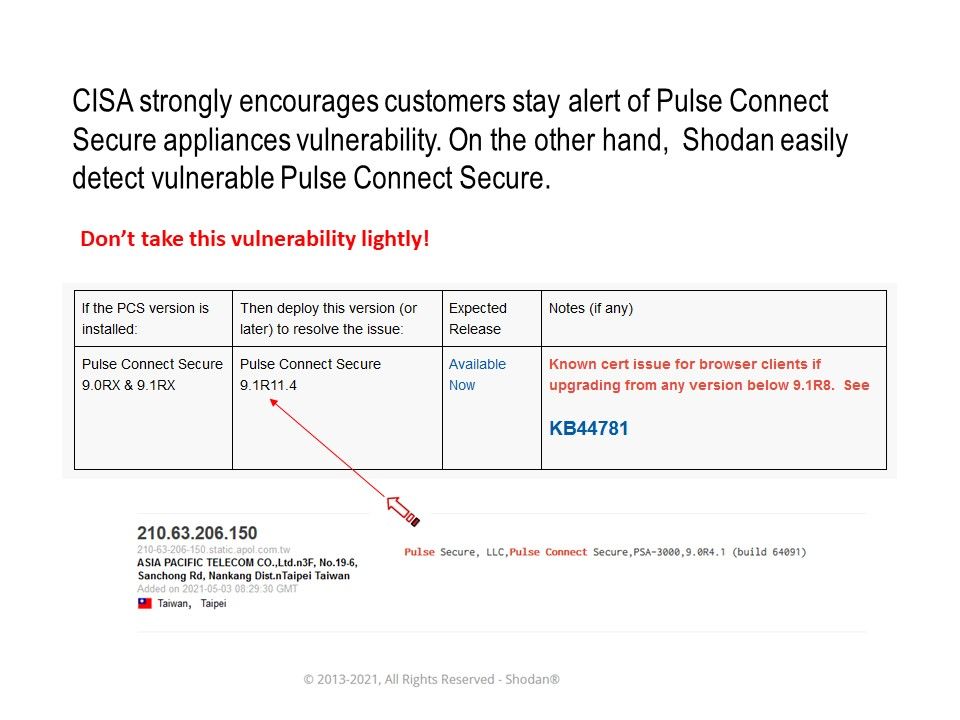 Preface: US Homeland security urge their local country computer users should stay alert of multiple vulnerabilities matter on Pulse Secure product. Perhaps all the world should be aware of it.