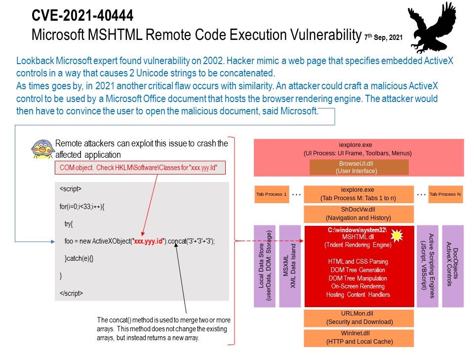 Vulnerability details: Lookback Microsoft expert found vulnerability on 2002. Hacker mimic a web page that specifies embedded ActiveX controls in a way that causes 2 Unicode strings to be concatenated.