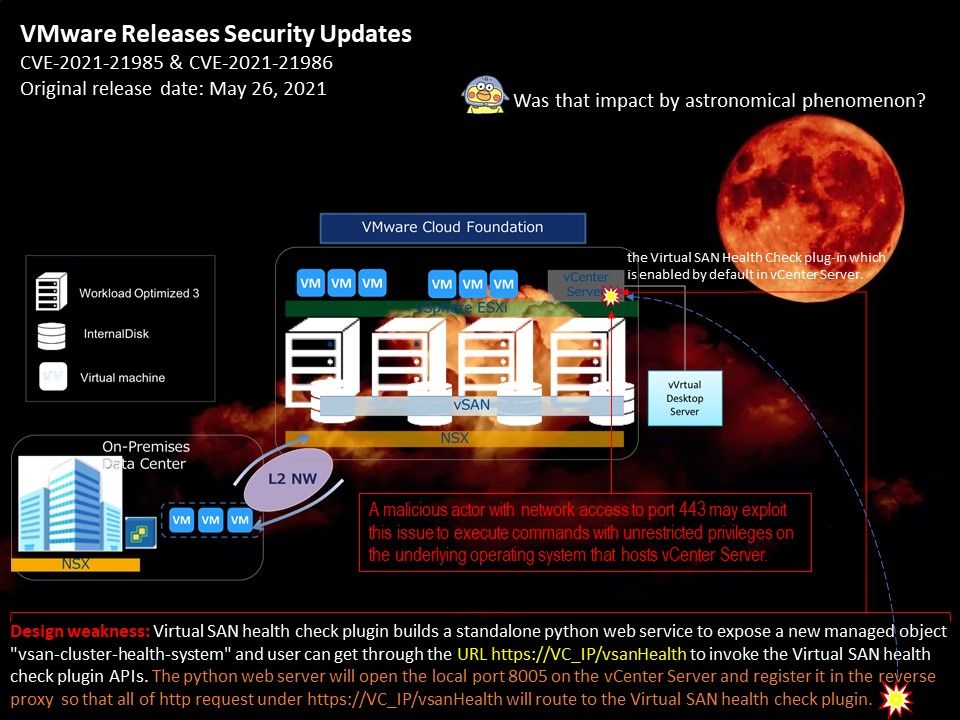 Vulnerability details: The vSphere Client (HTML5) contains a remote code execution vulnerability due to lack of input validation in the Virtual SAN Health Check plug-in which is enabled by default in vCenter Server.
